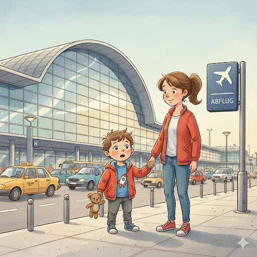 Ben war heute Morgen schon früh aufgewacht. Es war ein ganz besonderer Tag, denn heute würde er zum ersten Mal fliegen! Mit großen Augen stand er vor dem riesigen Flughafengebäude. „Wow!“, flüsterte er und zog Mamas Hand fester. So viele Autos und Busse, die alle zu diesem einen Ort fuhren! Es sah aus wie eine Stadt für sich.