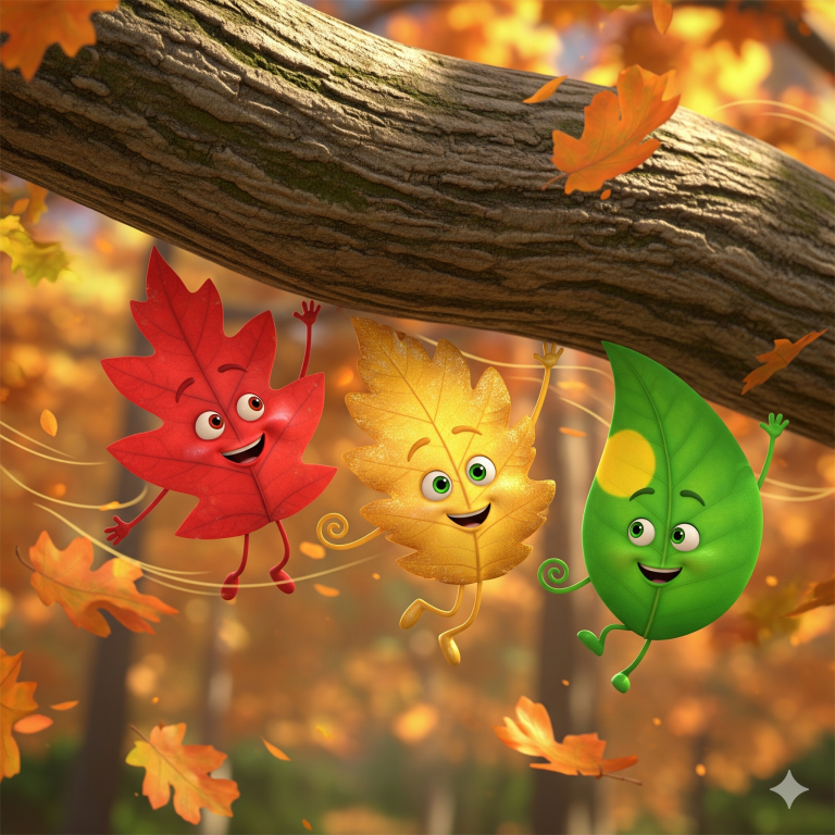 Hoch oben in der Krone eines riesigen, alten Eichenbaums, wo die Blätter im Sommer am grünsten und die Sonnenstrahlen am wärmsten waren, lebten drei kleine Blätter. Sie waren die allerbesten Freunde.