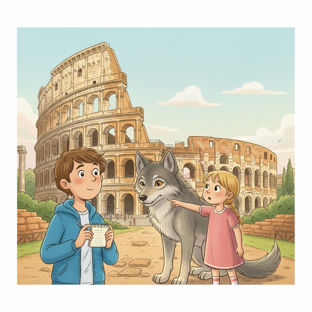 Noah, Emma und der weise Wolf von Rom 🇮🇹 Published DreamStorys 14. Oktober 2025 Emma und Noah auf Städtereisen