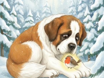 In einem kleinen, gemütlichen Holzhäuschen, das hoch oben in den verschneiten Alpen an den Hang gekuschelt war, lebte ein Bernhardiner namens Pippo. Pippo war kein...
