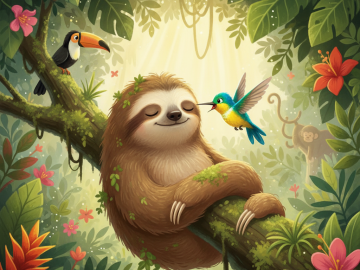 In den tiefgrünen Weiten des südamerikanischen Regenwaldes, wo riesige Bäume den Himmel kitzelten und farbenprächtige Vögel fröhliche Lieder sangen, lebte ein ganz besonderes Faultier namens...