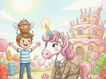 Es war einmal, in einem kleinen, zuckrigen Haus, das wie ein riesiger Geburtstagskuchen aussah, lebte ein kleiner Junge namens Finn. Finn liebte alles, was süß...